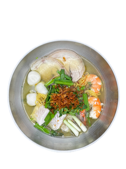 Pho Noodles/ Egg Noodles with Fish Filet, Fish balls, Shrimp, and Pork Shank
